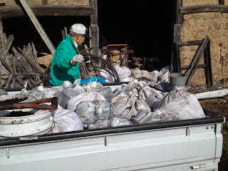 今日は倉迫さんと肥料の配分作業です。植樹を始めて5年の月日が経ちました。